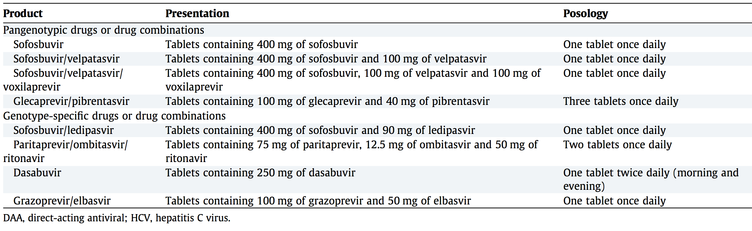 - La combinació de dosi fixa de sofosbuvir (400 mg) i velpatasvir (100 mg) en una sola pastilla administrada un cop al dia.